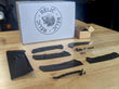 Crafted with the pride and precision that only the good ol' USA can offer, our kit embodies the essence of quality and heritage. Picture it: a black-as-night G10 scalloped handle made of durable woven fiberglass fabric and epoxy resin as secure as a bear hug. A razor-sharp smooth and serrated stainless steel blade coated in black oxide with a stonewash-like finish is a thing of beauty and utility.